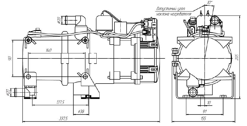 Этот подогреватель с тепловой мощностью 10 кВт служит для предварительного прогрева двигателя, чтобы исключить холодный запуск и может работать со штатным отопителем автомобиля, для отопления салона в холодный период.